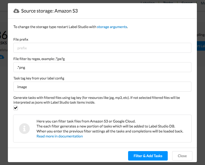 You can configure label studio to synchronize labeling tasks with your s3 or gcp bucket, potentially filtering by a specific prefix or a file extension. Label Studio will take that list and generate pre-signed URLs each time the task is shown to the annotator.