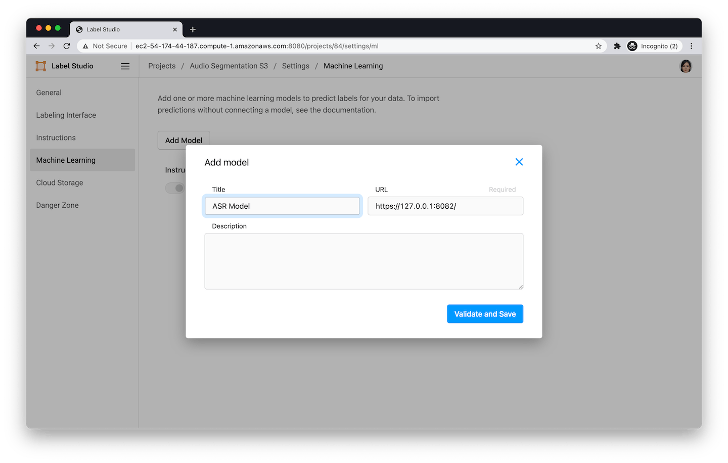 ML models can help pre-label data and optimize the data labeling process. For example, connect a segmentation model like Mask RCNN to give its prediction, then you can adjust the prediction to make it perfect. Another example is if you connect an ASR model to provide speech transcription for further labeling.