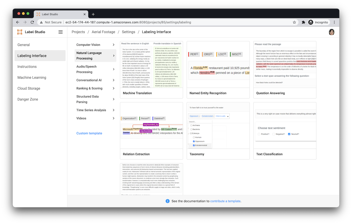 You can start labeling quickly by using a template to configure the labeling interface for your project, or enjoy a greater level of flexibility with custom tags.