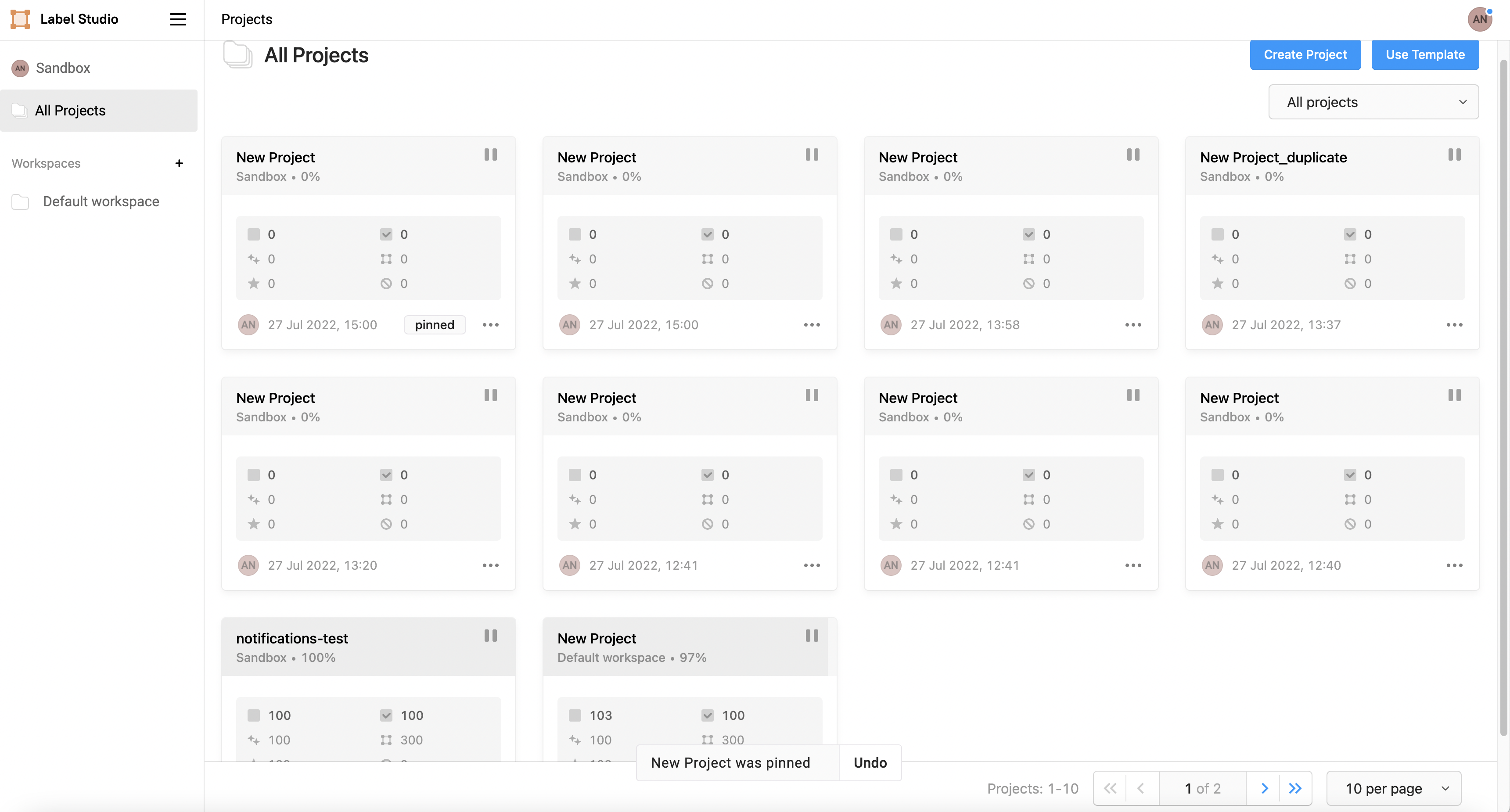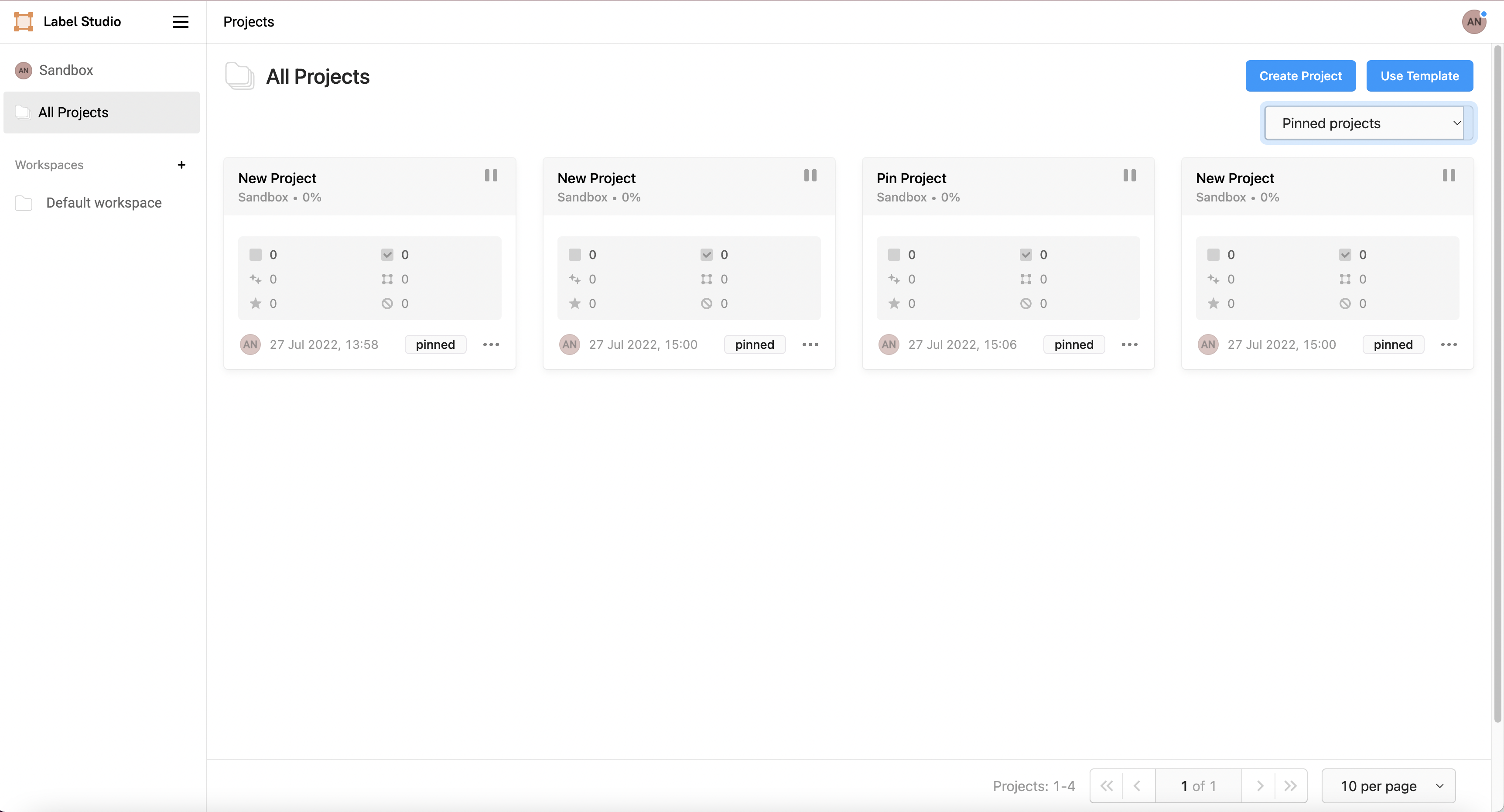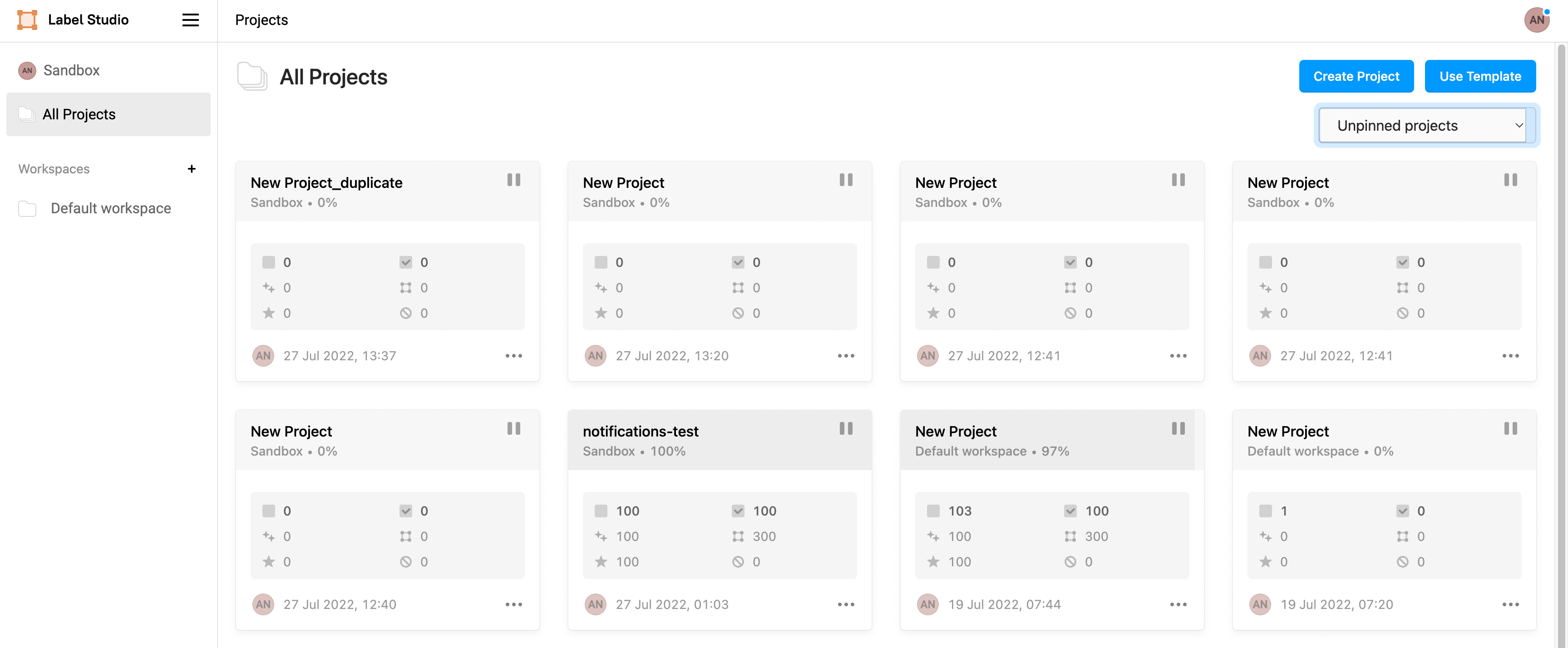 - In the Label Studio UI, click All Projects to see all the projects in one place.