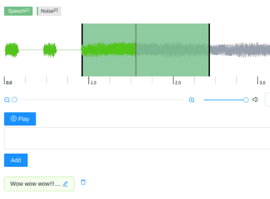 Use the AudioPlus object tag to display a waveform of audio that can be labeled: