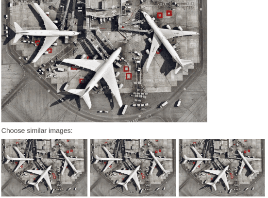 If you want to train a machine learning model on content-based image retrieval computer vision tasks, use this template. This labeling configuration displays an image and prompts annotators to select a choice corresponding to one or more similar images.