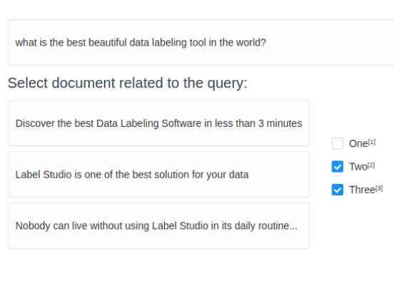 If you want to start training document retrieval or recommender models, you might want to develop a dataset with that identifies similar documents. Use this template to identify and choose documents that are related to a specific query or an existing document.