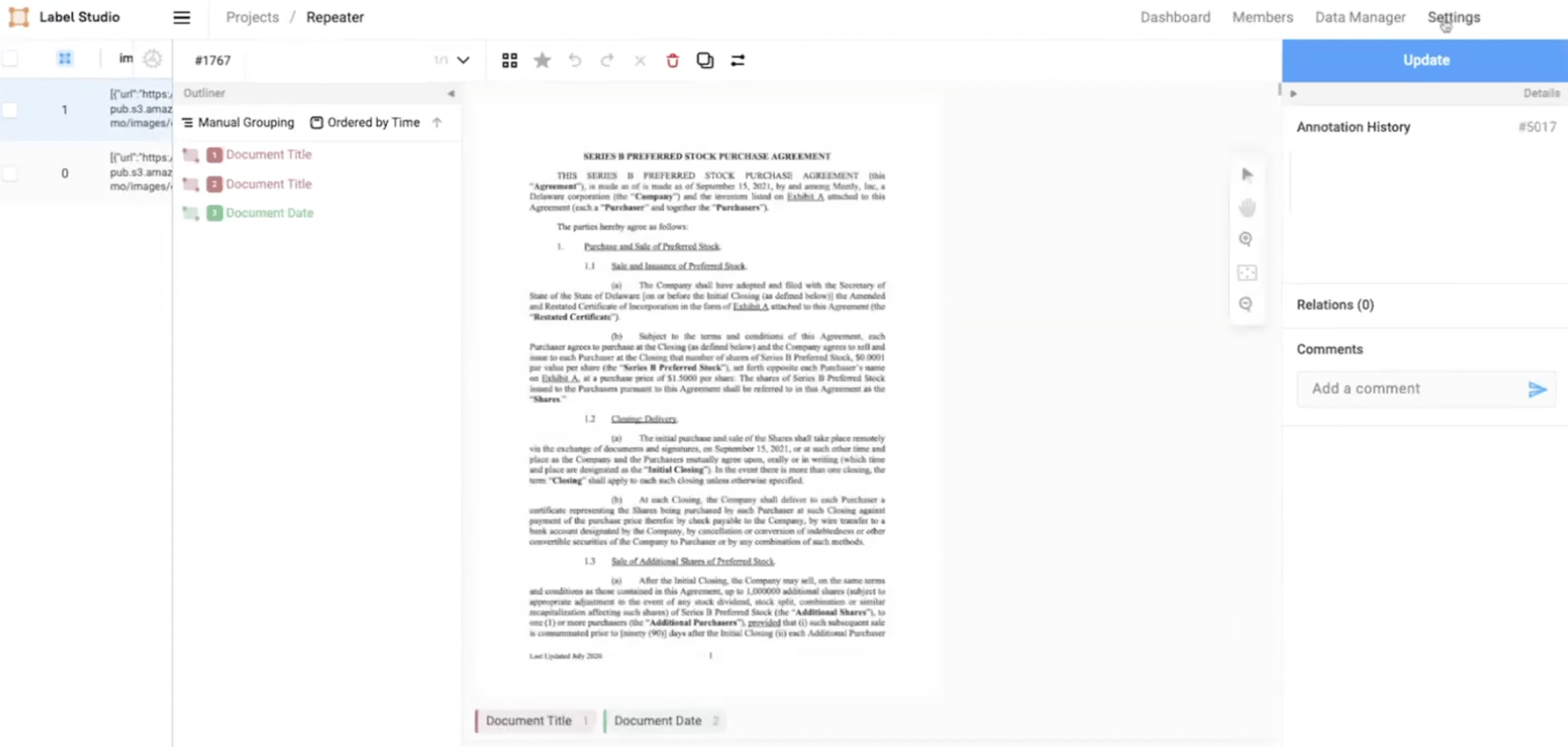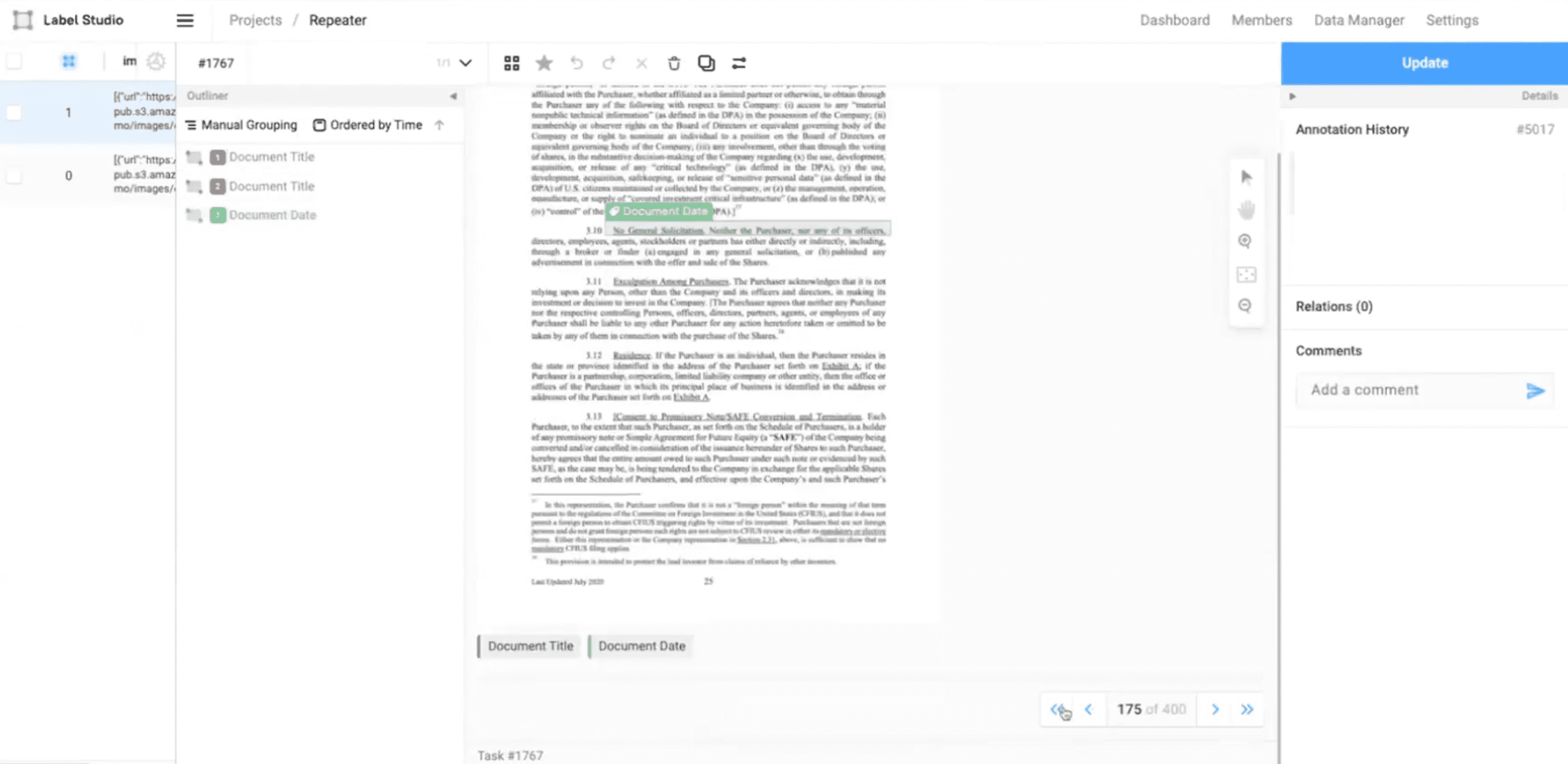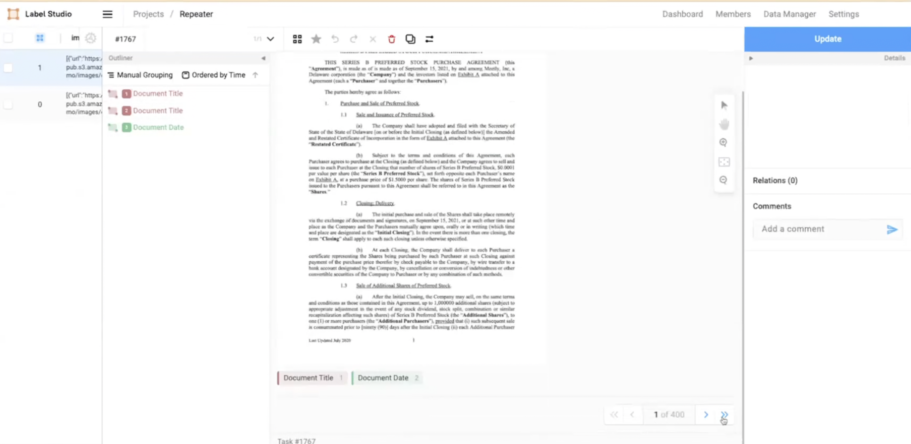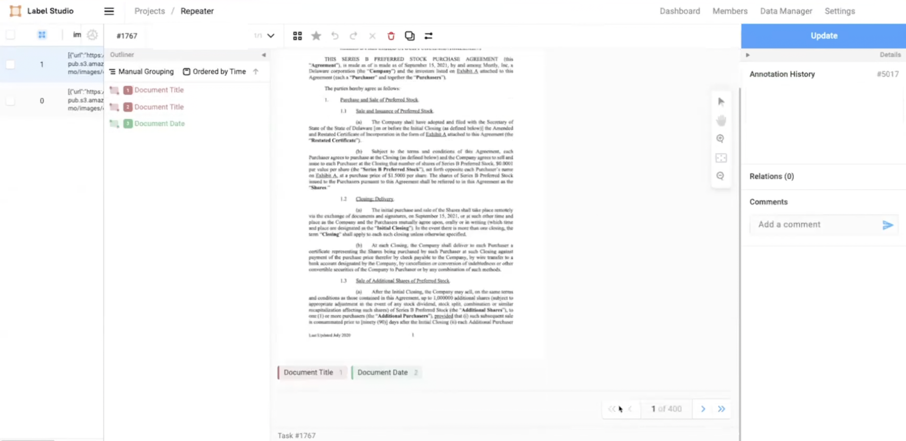 With Label Studio Enterprise, the multi-page document annotation feature allows you to label large multi-page documents more easily and efficiently. You can now upload hundreds of pages as a single document, allowing navigation and annotation on multiple pages while maintaining the entire document’s context. This release eliminates the significant amount of lag in loading the images into the browser and enhances the labeling speed.