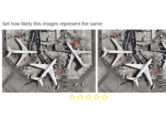 If you need a dataset to train a pairwise regression model, use this template to rate pairs of images based on how similar they are. You can also customize this template to rate different properties of different types of data, such as rating whether the sentiment of two text excerpts of movie reviews is similar.