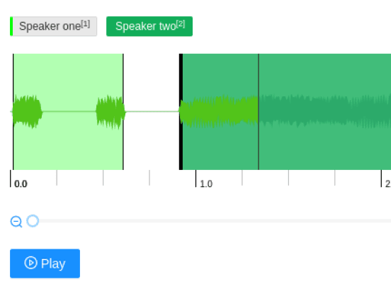 When preparing audio transcripts or training a machine learning model to differentiate between different speakers, use this template to perform speaker segmentation and label different regions of an audio clip with different speakers.